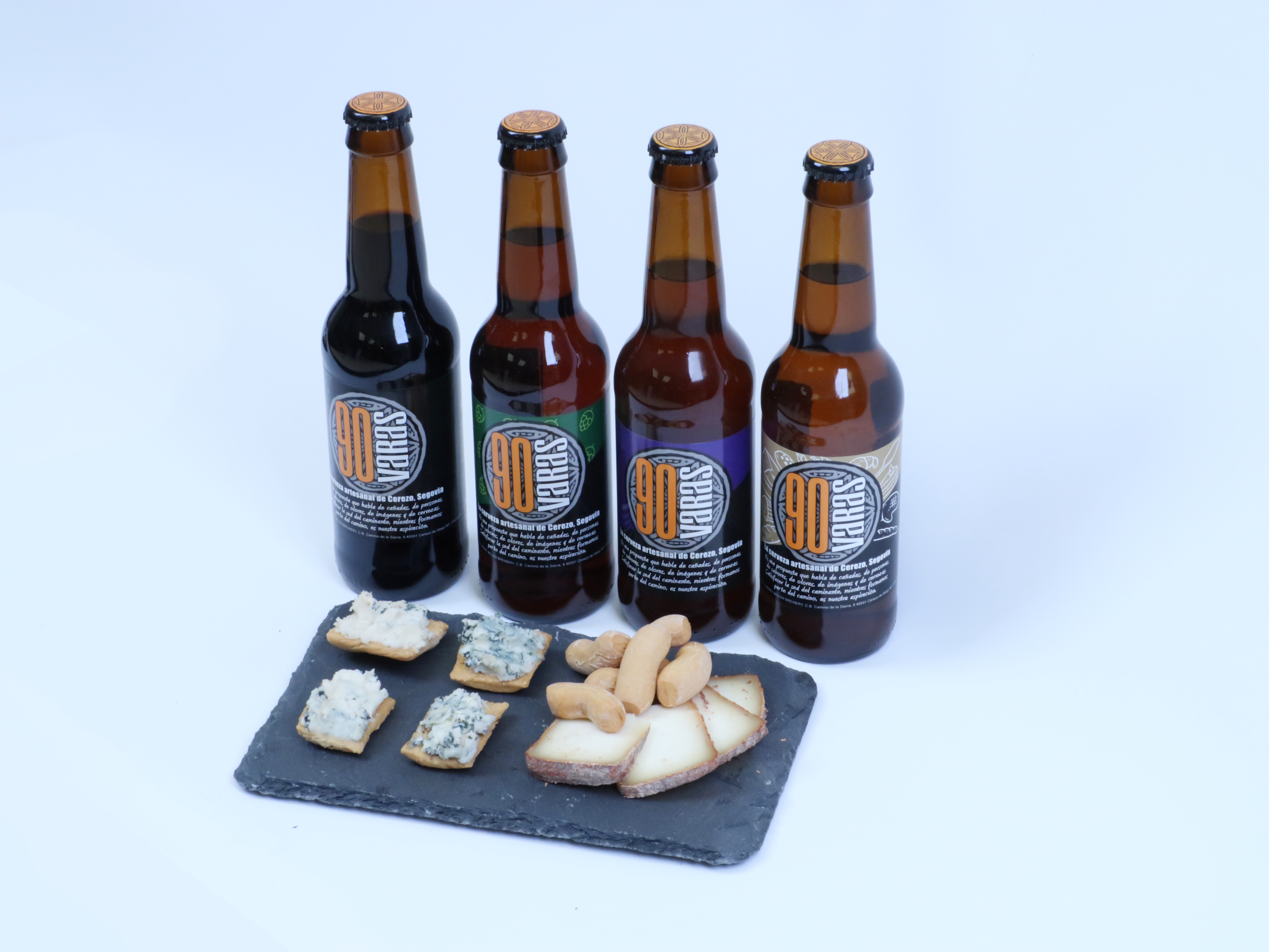 Cervezas 90 varas te ofrece una visita guiada a su fábrica y una cata maridaje en la que podrás probar 4 variedades de 90 varas de muy diferentes estilos con cuatro quesos artesanos de Moncedillo y Sacramenia: